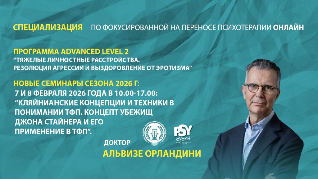 7 и 8 Февраля 2026 года. Альвизе Орландини с темой: “Кляйнианскии концепции и техники в понимание в ТФП. Концепт убежищ Джона Стайнера и его применение в ТФП“